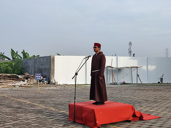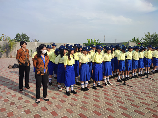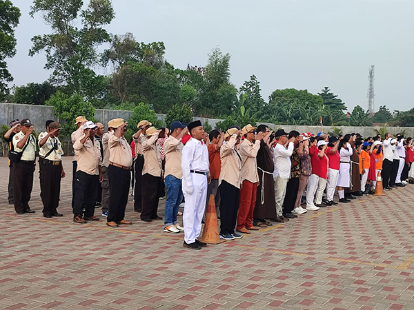 Bertindak sebagai Pembina Upacara Plt Pastor Kepala Paroki Romo Kaprilius,OFMCap dihadiri puluhan umat serta petugas upacara dari siswa-siswi Sekolah Strada Budi Luhur Kota Bekasi.