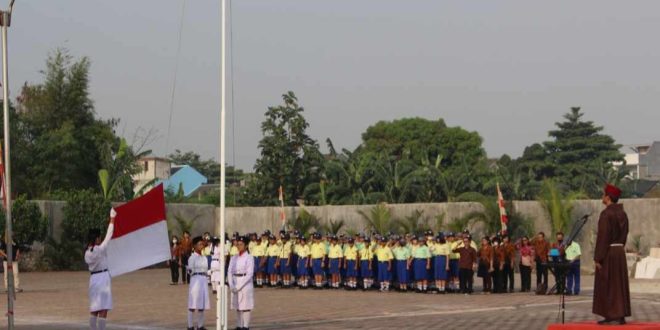 Bertindak sebagai Pembina Upacara Plt Pastor Kepala Paroki Romo Kaprilius,OFMCap dihadiri puluhan umat serta petugas upacara dari siswa-siswi Sekolah Strada Budi Luhur Kota Bekasi.